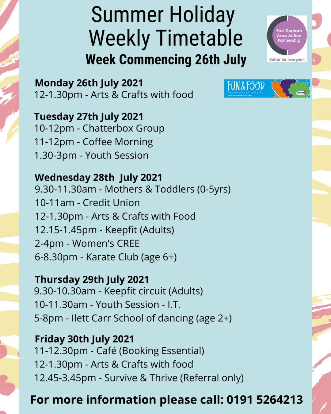 Shotton Community Hub Partnership On Twitter Summer Holiday Timetable 26th 30th July Here Is Our Timetable For Week Commencing 26th July To Book Or For More Information Please Call The Hub On